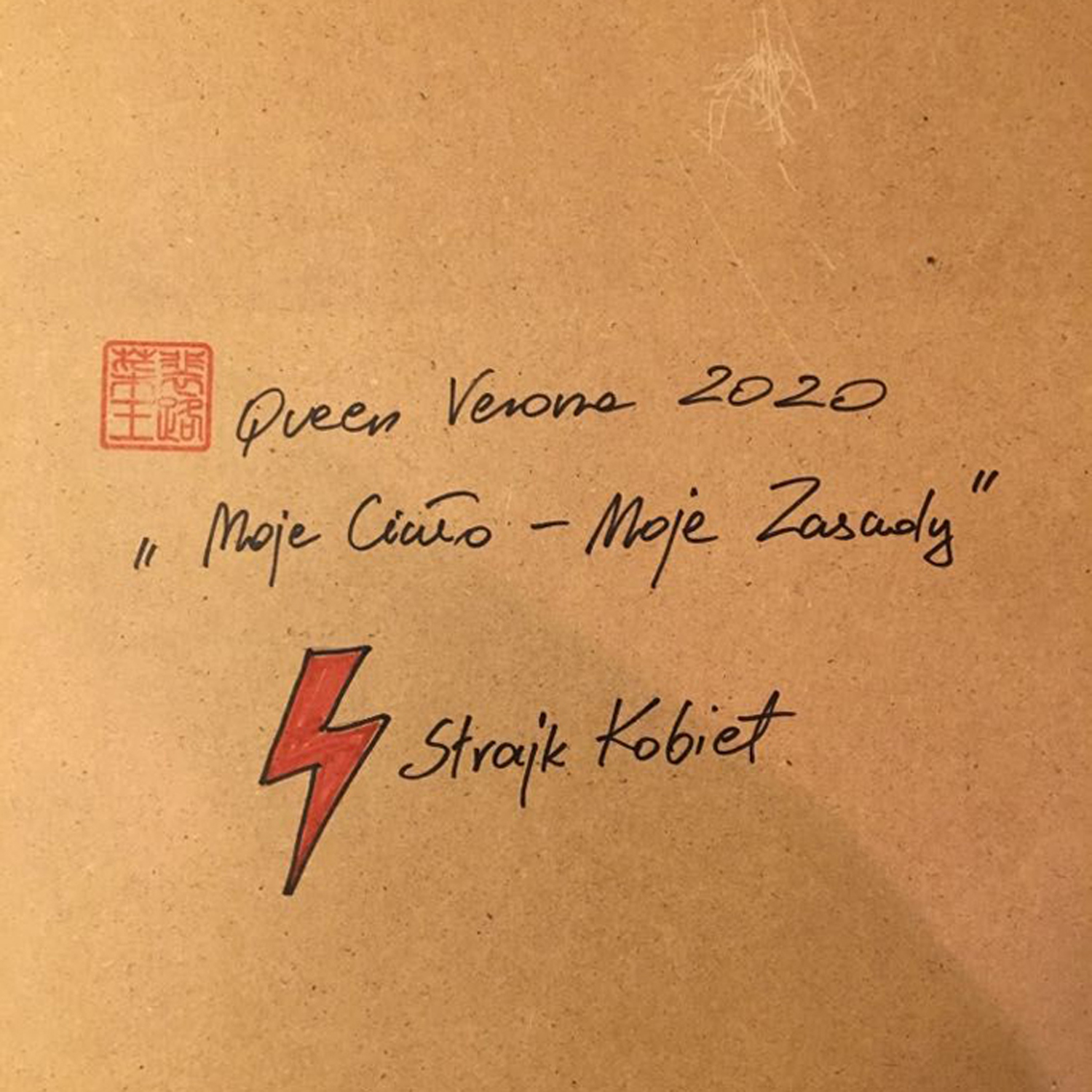 In the fall of 2020 I was diagnosed with Covid-19 and had to stay at home during the entire wave of the Black Strike of Polish Women. I worked on this painting thinking about how lucky I am to have lived to witness the mass awakening of sisterhood around the world and the slow but sure breaking down of patriarchy. I'm not sure I'll live long enough to see it end, but I'm certainly looking at a big change.