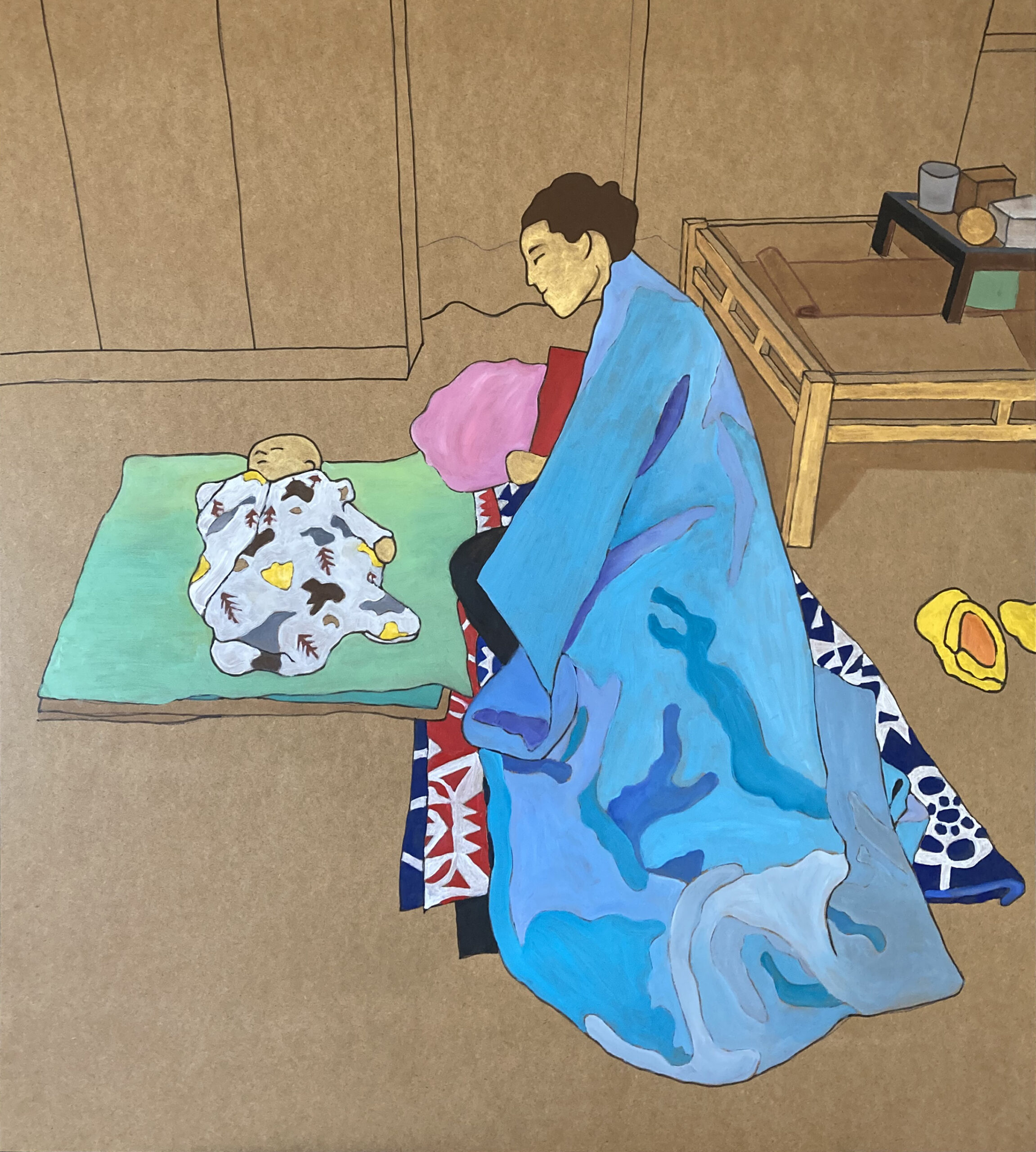 Praca powstała na podstawie wspomnienia: moja siostra i jej półroczny synek w Boże Narodzenie spali na podłodze na moim strychu, bo dziecko tej nocy bardzo się kręciło i Mama bała się że spadnie z łóżka.