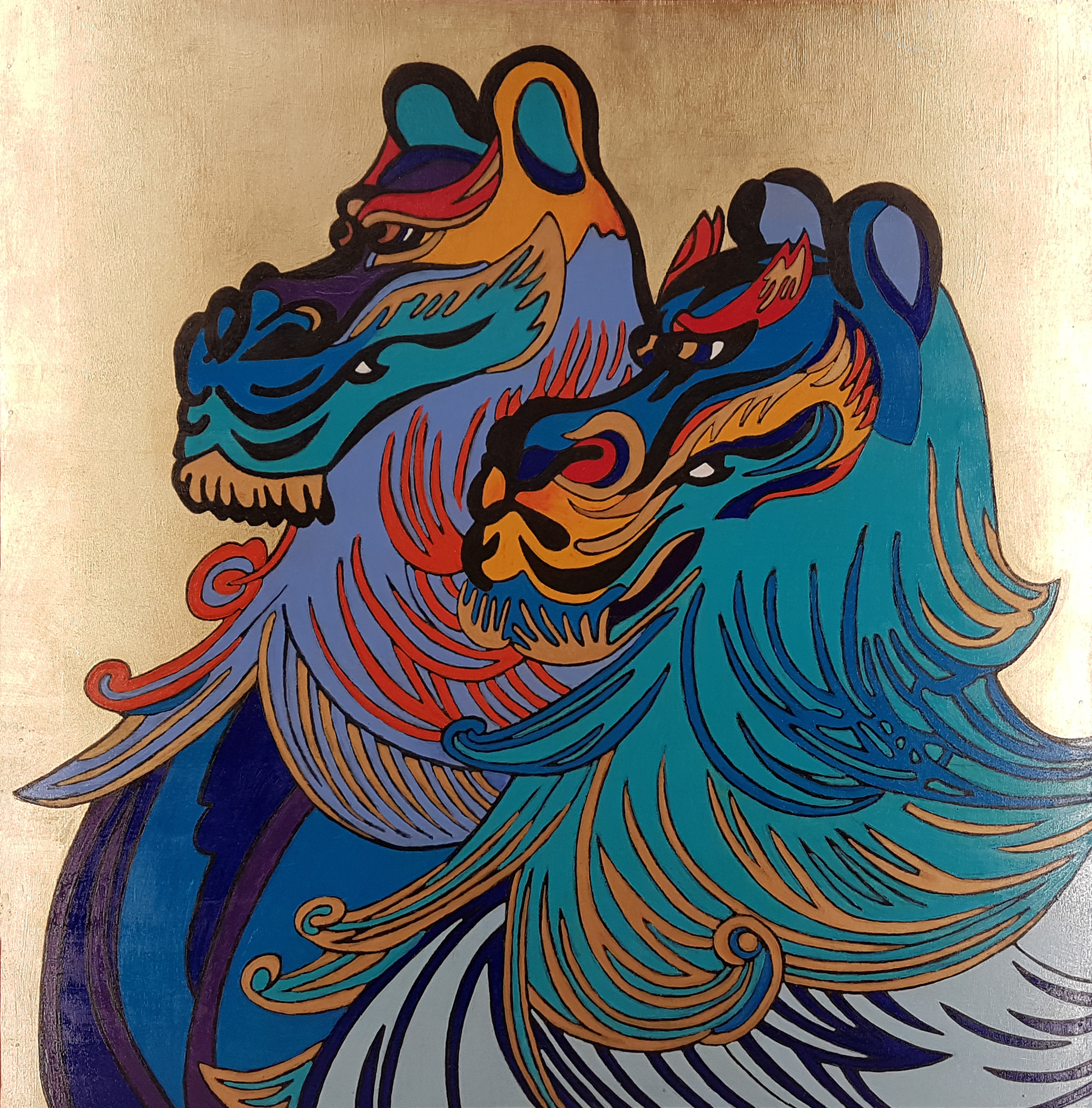 Praca zainspirowana pracami japońskiego artysty lub japońskiej artystki której / którego wystawę widziałam w 2009 roku w Muzeum Narodowym w Tokio. Niestety wtedy jeszcze nie widziałam że zrobiła na mnie takie wrażenie i nie zapisałam imienia... Szukam go / jej od tego czasu bezskutecznie żeby kupić album lub plakat - w związku z tym musiałam sobie sama namalować co pamiętam...
