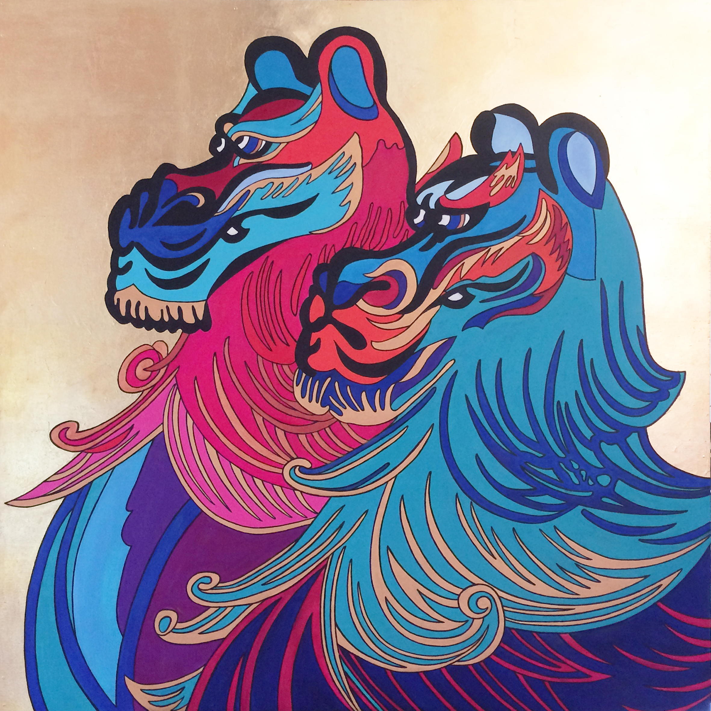 Praca zainspirowana pracami japońskiego artysty lub japońskiej artystki której / którego wystawę widziałam w 2009 roku w Muzeum Narodowym w Tokio. Niestety wtedy jeszcze nie widziałam że zrobiła na mnie takie wrażenie i nie zapisałam imienia... Szukam go / jej od tego czasu bezskutecznie żeby kupić album lub plakat - w związku z tym musiałam sobie sama namalować co pamiętam...
