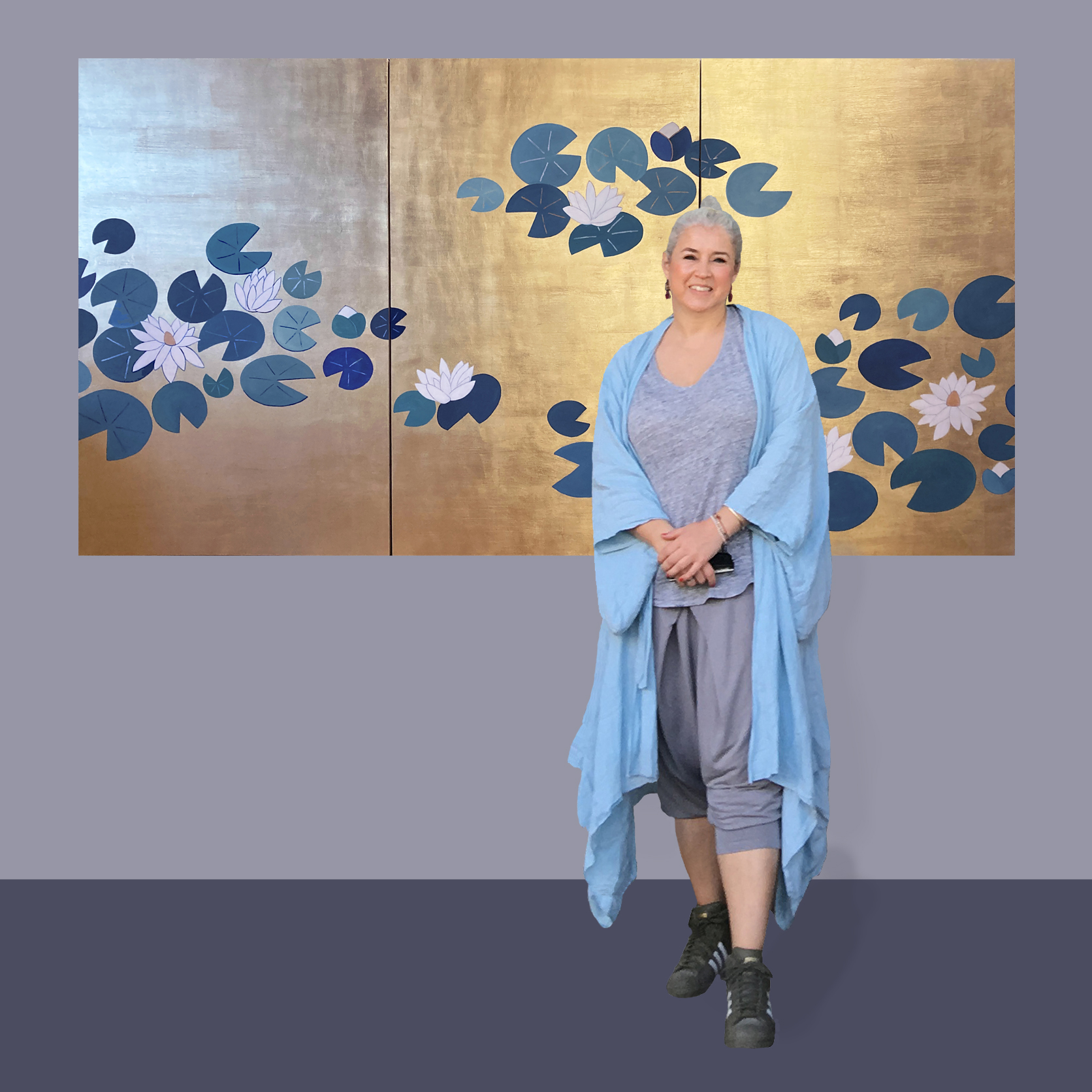 Na szkicu liście były zielone i miało to być zwykłe przedstawienie krajobrazu, jednak później zwróciłam się w stronę onirycznego nastroju i zmieniłam liście na błękitne. Następnie zdecydowałam się zająć się zasypianiem, i tak po lewej stronie wszystko jest dokładnie wyszczególnione, w środku lekko przybrudzone złotem i srebrem; a gdy śpisz, nie ma żadnych szczegółów, liście zmieniają się w PAC-menów, kwiaty w jajka sadzone, a logika snów przejmuje kontrolę...